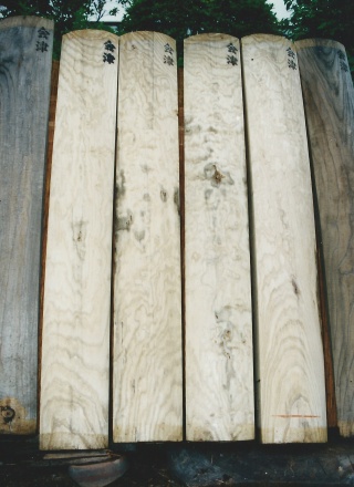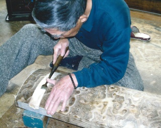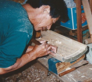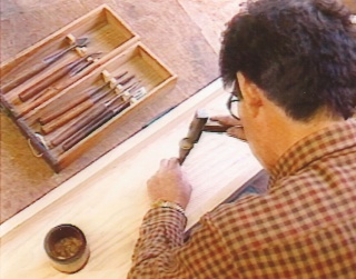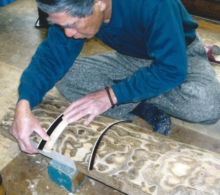 素材の状態の桐 加工には精密な技術を要求される おおまかな加工を終えた状態 焼ゴテで楽器の表面に焼きを入れる 焼いた後、磨くことによって耐久性が増し、木目が美しく浮かび上がる。 部材は全て一から造り出され、楽器に組み込まれていく。 自然な木の風合いが、楽器の個性となる。
